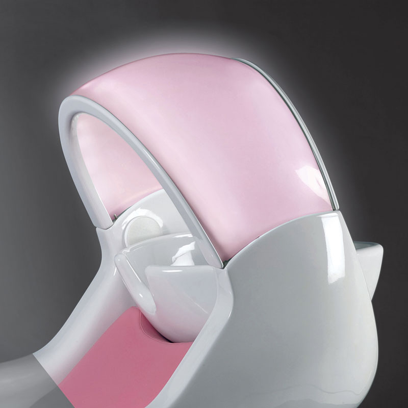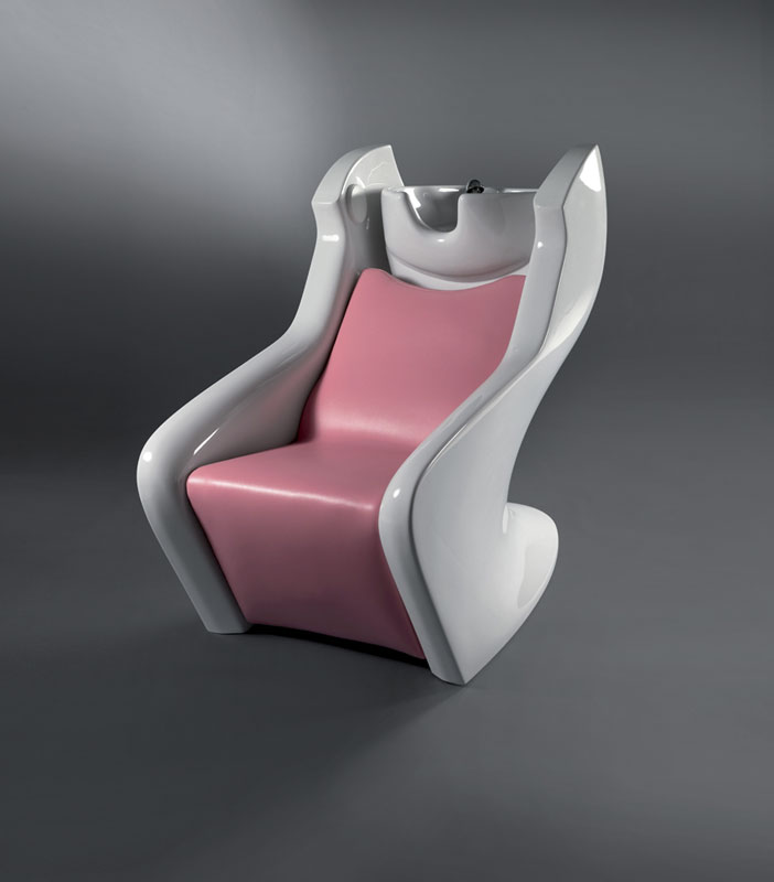 En foto: estructura de fibra de vidrio de color blanco; tapizade en skai de colore rosa modelo K.R. PINK; teja de ceramica blanca